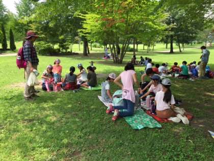 大谷川公園で、お弁当を食べています。