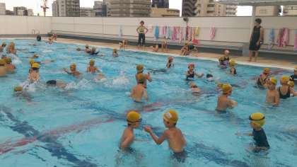 夏休みに入りましたが、今日も子どもたちの元気な声が響いています。夏期水泳に来ている児童がプールを楽しんでいました。今後もまだまだ、夏期水泳の実施される予定です。たくさんの子どもたちが参加することを、楽しみにしています。