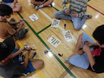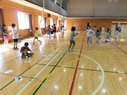 今日は体育館で空気砲サイエンスショーを見せていただいた後、ペットボトルの空気砲工作と、空気砲遊びをしました。