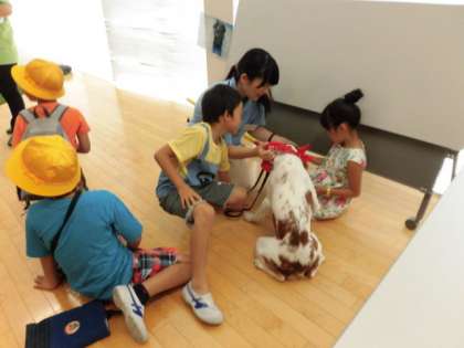 動物との接し方を教えていただいた後、子どもたちが直にふれる体験をさせていただきました。