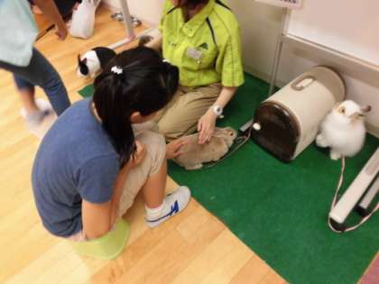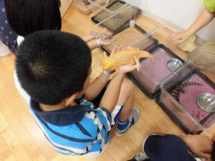 国際動物専門学校の方々が、大型犬、小型犬、モルモット、うさぎ、セキセイインコ、カメ、トカゲなどのたくさんの動物をつれてきてくれました。