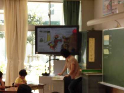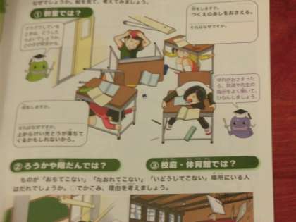 1年生の教室では、地震の時にどのようにして自分の身を守るか、テキストを見ながら学習していました。