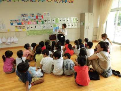 朝の時間、「きのこのへや」のみなさんによる読み聞かせがありました。