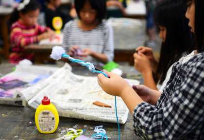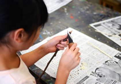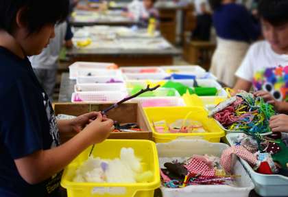 3年生、「木の枝でマイペンをつくろう」の続き。(図工専科)