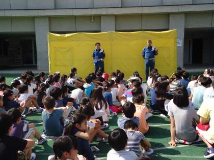 火災を想定した避難訓練のあと、2,4,6年生は煙中訓練を行いました。
