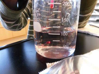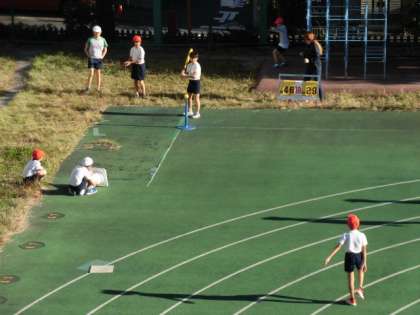台風一過の校庭では、球技クラブがTボールを、理科室では、化学クラブが「人口イクラづくり」をしていました。