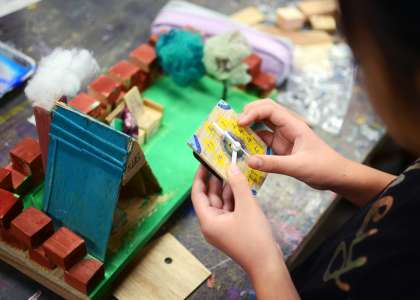 4年生、「トケイランド」の授業のつづき。(図工専科)