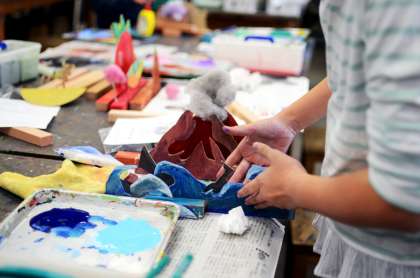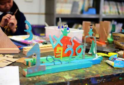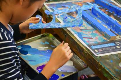 5年生、「ズラシックパーク」の授業のつづき。(図工専科)