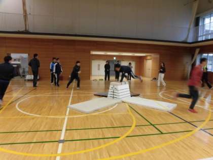 会議のない水曜日でしたが、先生方が自主的に跳び箱実技研修会を実施していました。