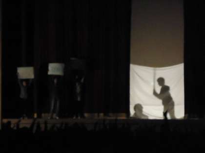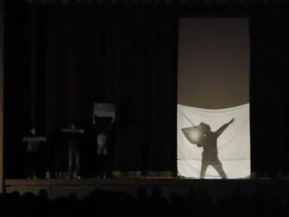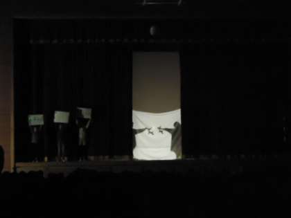 真っ暗な体育館の中で、子供たちは映し出されるシルエットに集中します。