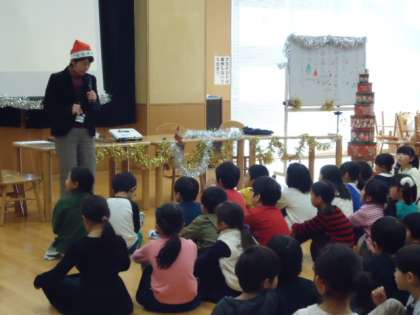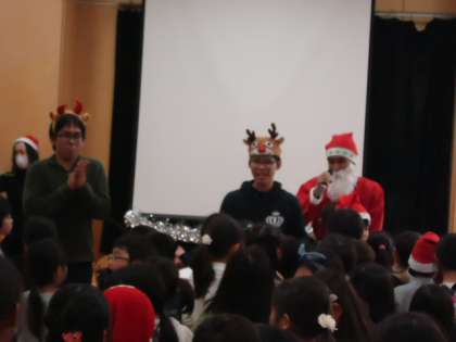 お母さんたちの読み聞かせや工作、マッシュルーム(英語の読み聞かせ)に加えて、校長先生の読み聞かせや先生たちのゲーム、サンタ・トナカイ登場など盛りだくさんの楽しいひと時でした。