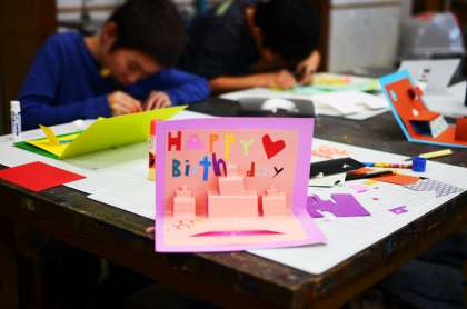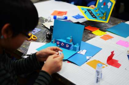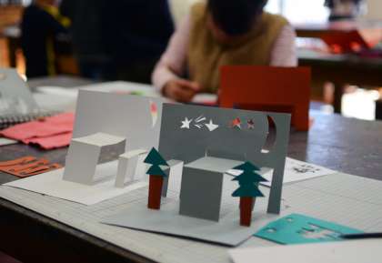 4年生「とび出すメッセージ」の授業のつづき。(図工専科)