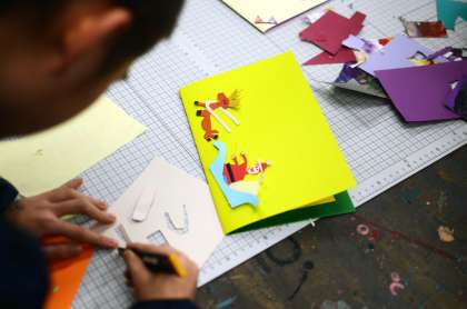 今週の4年生「とび出すメッセージ」の授業から。2学期最後の図工の時間です。だれに対して、どんな思いを、どのようなしくみを使って伝えるか。そんなことを考えながら飛び出すしかけのあるメッセージカードを紙だけでつくってきました。絵や文字の部分もペンや絵の具などの描画材は一切使いません。