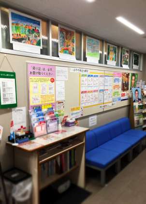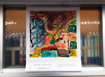 世田谷上馬郵便局に児童作品を展示していただきました。今回は5年生の「いつも見ている風景を…」です。城南信用金庫駒沢支店にも4年生「木々との対話」を展示していただいています。(図工専科)