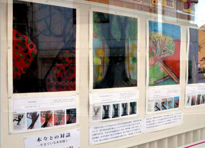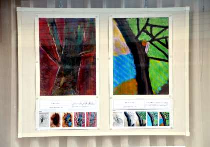 城南信用金庫駒沢支店に児童作品を展示していただいています。今回は4年生の「木々との対話−生きている木を描く−」です。世田谷上馬郵便局には5年生の「いつも見ている風景を…」を展示していただいています。1月末まで展示の予定です。(図工専科)