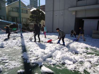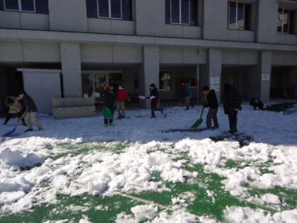 「早く校庭で体育がしたい!」と、5年生が自宅から持ってきた雪かきスコップなどを使って雪かきをしてくれました。