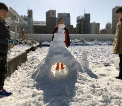 5年生、雪を使った造形活動の授業のつづき。(図工専科)