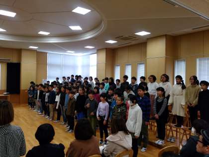 5年生は、平家物語の冒頭「祇園精舎」を発表しました。(副校長)