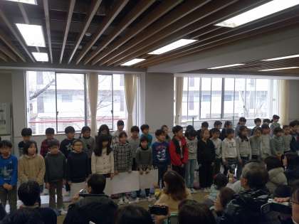4年生は、枕草子一段「春はあけぼの」を発表しました。4年生が創作した駒沢小学校バージョンの「春はあけぼの」も発表しました。(副校長)