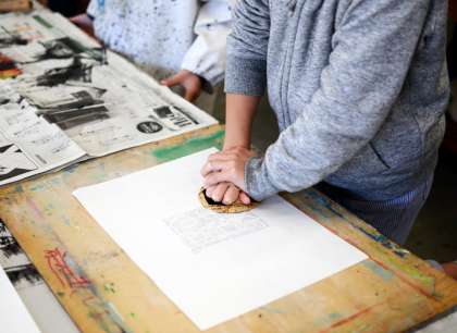授業では、わたしたちの生活に欠かせない印刷技術の“原点”を体験し、一枚の版から同じものが何枚も刷れる“複製のおもしろさ”も実感としてつかんでほしいなと思っています。(図工専科)