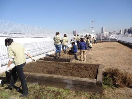国際動物専門学校の先生と学生さんが来てくださり、ビオトープや屋上菜園、第二校舎前の整備をしてくださっています。