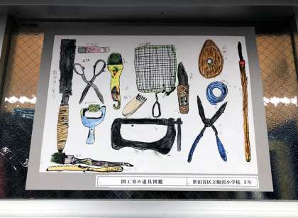 世田谷上馬郵便局に児童作品を展示していただきました。今回は3年生の「図工室の道具図鑑」です。なお、この題材の授業の様子は、10月23日、27日、11月2日、12月9日、25日の“図工室より”を参照ください。(図工専科)