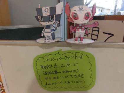 東京2020マスコットキャラクターのペーパークラフトが届きました。HPのお知らせに貼ってありますので、興味のある方は印刷をして作ってみてください。