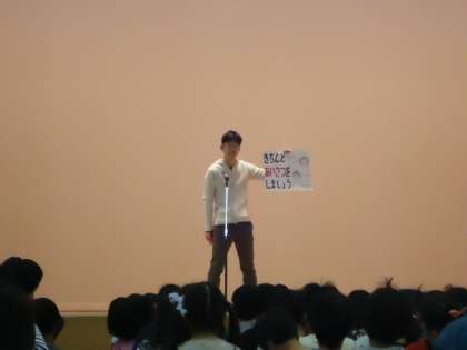 全校朝会の校長講話は「よいところさがし」についてでした。