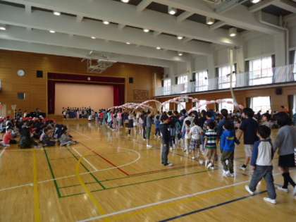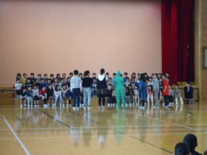 学年ごとに駒沢小学校の学校生活の紹介をしました。そのあとは、1年生も一緒にゲームをしました。