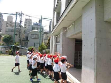 さっそく、どの学年も、運動会練習中の休憩時間にミストシャワーの下で涼をとっていました。