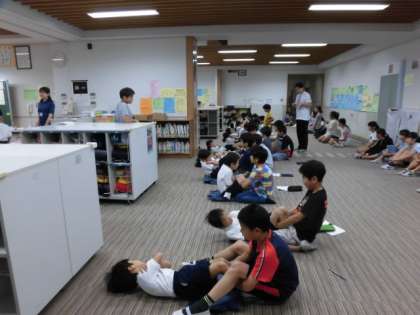 今朝は、6年生のお手伝いで、1年生が上体起こしをしていました。