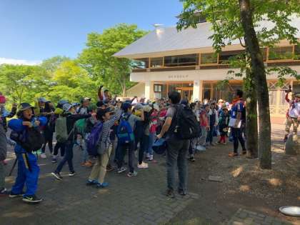 頑張るぞ! おーっ!の掛け声で元気に出発です。