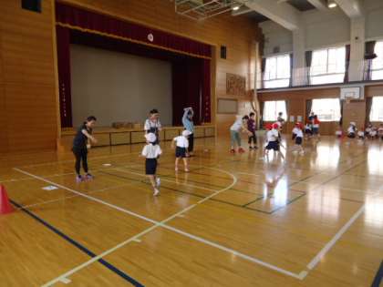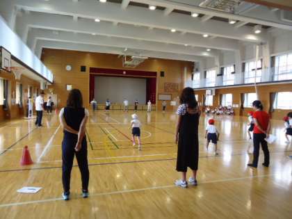 1年生のシャトルランの計測を地域の方と保護者の方が手伝ってくださいました。