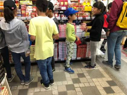 お野菜?りんごジュース?キーホルダー?アップルパイ?たくさんある、川場の名産の前で、楽みながら悩んでいます。