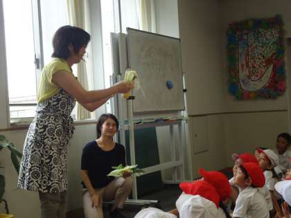 給食で使うとうもろこしの皮むきのお手伝いを2年生がしてくれました。 最初に、とうもろこしのひげや、実について学び、とうもろこしの皮の中の様子をよく調べながら、丁寧にむいてくれました。2年生のみなさんありがとう!(今日のとうもろこしは、東京都小金井市の農園から収穫したてのものが納品されました。)