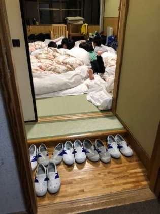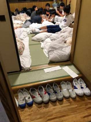 お布団敷いて、友達とおしゃべり。この時間が楽しいんだなぁ。靴だって揃えてますよ。さあ、そろそろ寝よう!