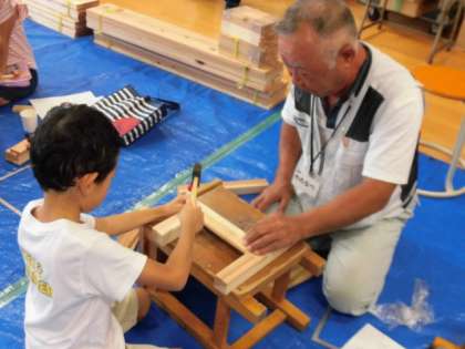 毎年大人気の講座です。今年は椅子を作りました。みんな集中して取り組み、出来上がった椅子を大事に抱えて持ち帰りました。(副校長)