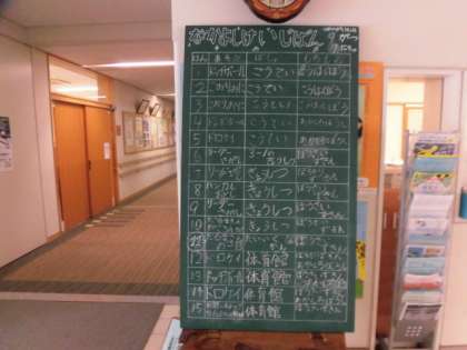 本日の昼休みは、6年生がリーダとなって、なかよし班で遊びました。玄関にある黒板を各自で確認し、自分の班の場所に行って遊びます。