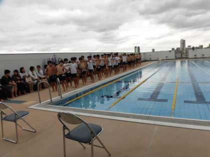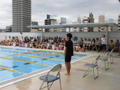 うすぐもりで、気温が低いなかではありましたが、どの子も、自分の種目を精いっぱい泳ぎました。それだけでなく、仲間の応えんも一生けん命でした。