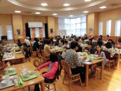 地域のお年寄り方や児童の祖父母を招待し、学習したことを発表したり、楽しく給食を食べたりしました。
