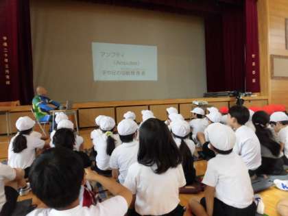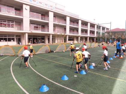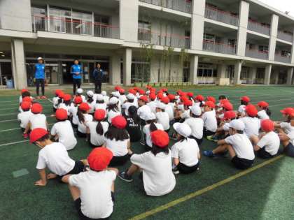 3・4年生が、アンプティサッカー(切断障がい者のためのサッカー)の体験を行いました。選手として活躍した方から、クラッチという道具の使い方を教わりながら、競技の楽しさや難しさを感じることが出来ました。