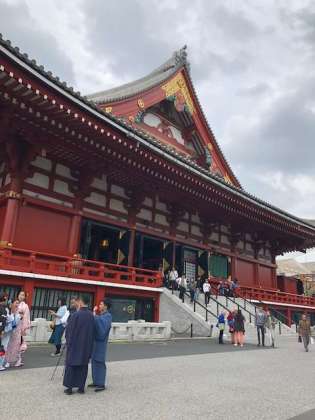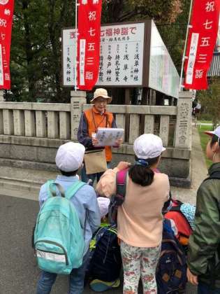 浅草浅草寺をボランティアガイドの方と見学しています。