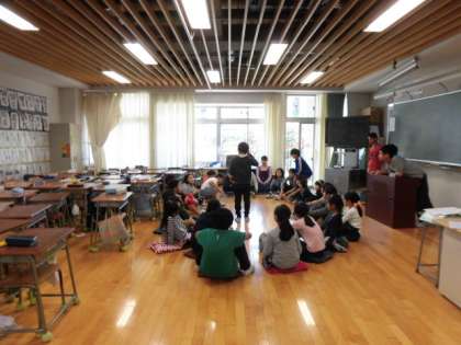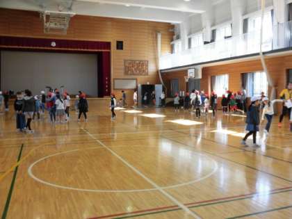 雲一つない青空です。そうじの時間と昼休みの時間を使って、校庭・体育館・教室でなかよし班活動が行われました。