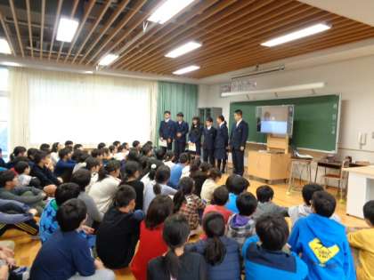 駒沢中学校の生徒会の皆さんが駒沢小学校に来て、6年生に中学校紹介をしてくださいました。