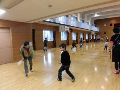 今日は、朝の時間と1時間目を使って新春遊び集会を行いました。