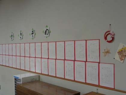 子どもたちが一生懸命に書いた力作ぞろいです。どうぞごらんください。(副校長)