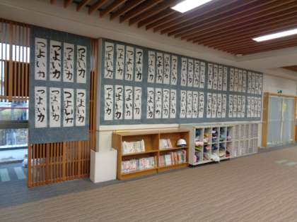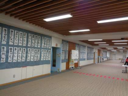 今日から、各教室前のオープンスペースで書き初め展を行っています。