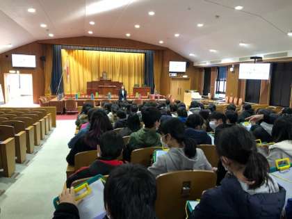 道路がすいていたので、早めに参議院体験プログラムの会場に到着しました。 (校長)