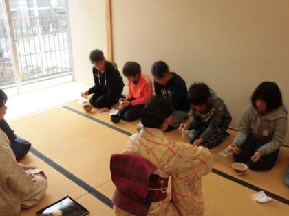 「初めてで楽しかった。」「泡が上手く出なかった。」など楽しみながら茶道の文化に触れることができました。