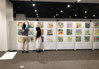 駒澤大学手話サークルのみなさんの丁寧で確実な仕事に予定どおり展示を終えることができました。何度も学校まで作品を取りにきてくださった大学職員のみなさん、展示デザインの打ち合わせから会場設営までありがとうございました。(図工専科)